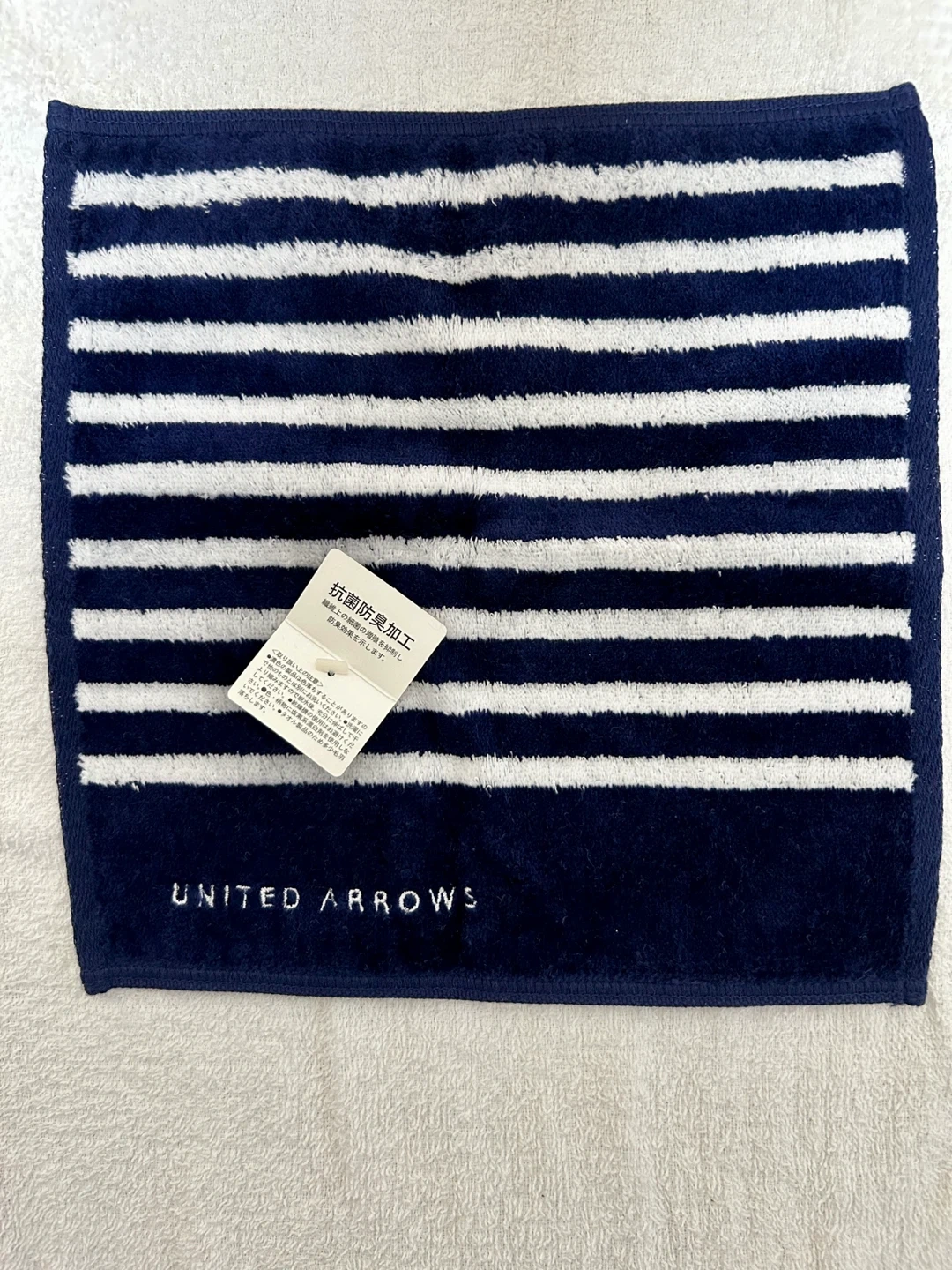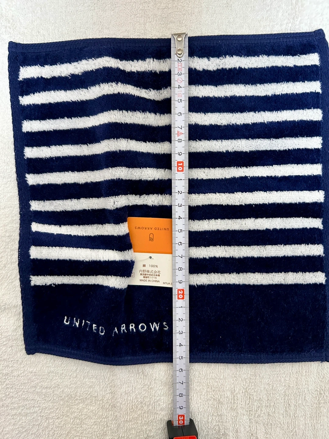 【新品未使用】UNITED ARROWS ストライプ タオルハンカチ UNITED ARROWSのストライプデザインのタオルハンカチ、柔らかいコットン素材で使いやすい。 - ブランド: UNITED ARROWS - デザイン: ストライプ - サイズ: 約35cm x 35cm 素人採寸です。写真ご参考にして下さい。 - 素材: 100% コットン 【受け渡し場所】 地下鉄東西線落合駅 orJR総武本線東中野駅周辺 ご覧いただきありがとうございます。