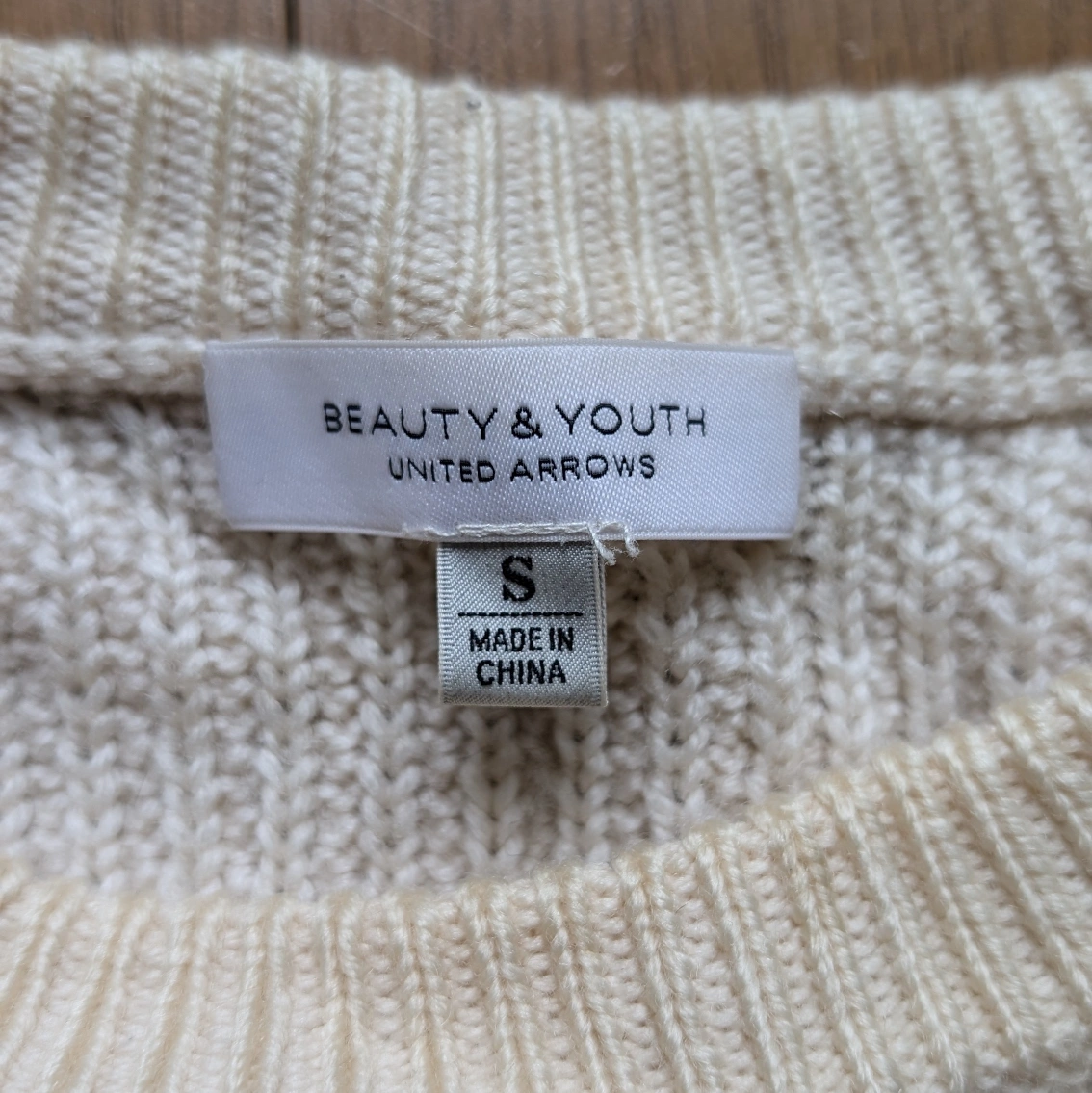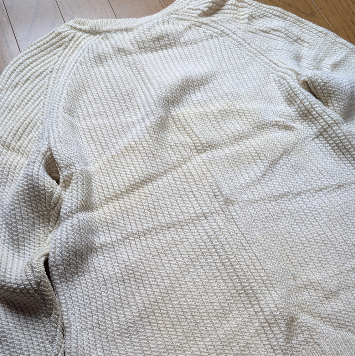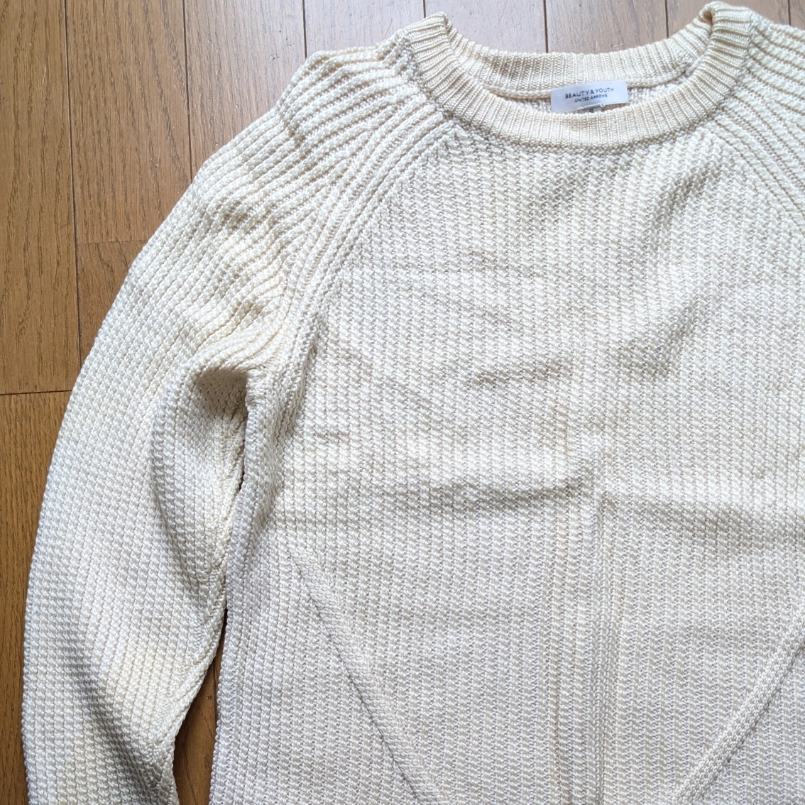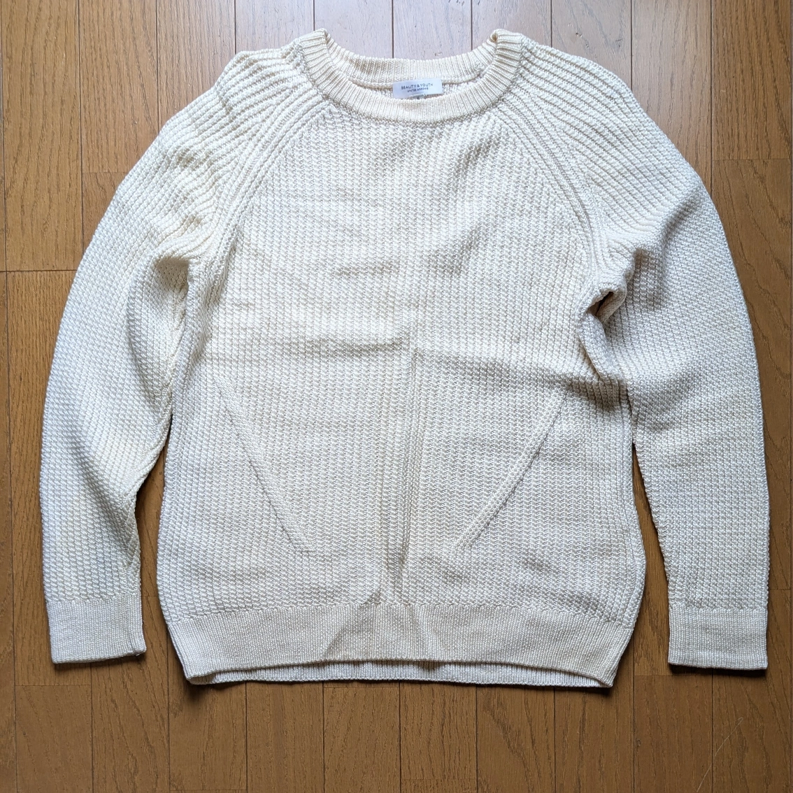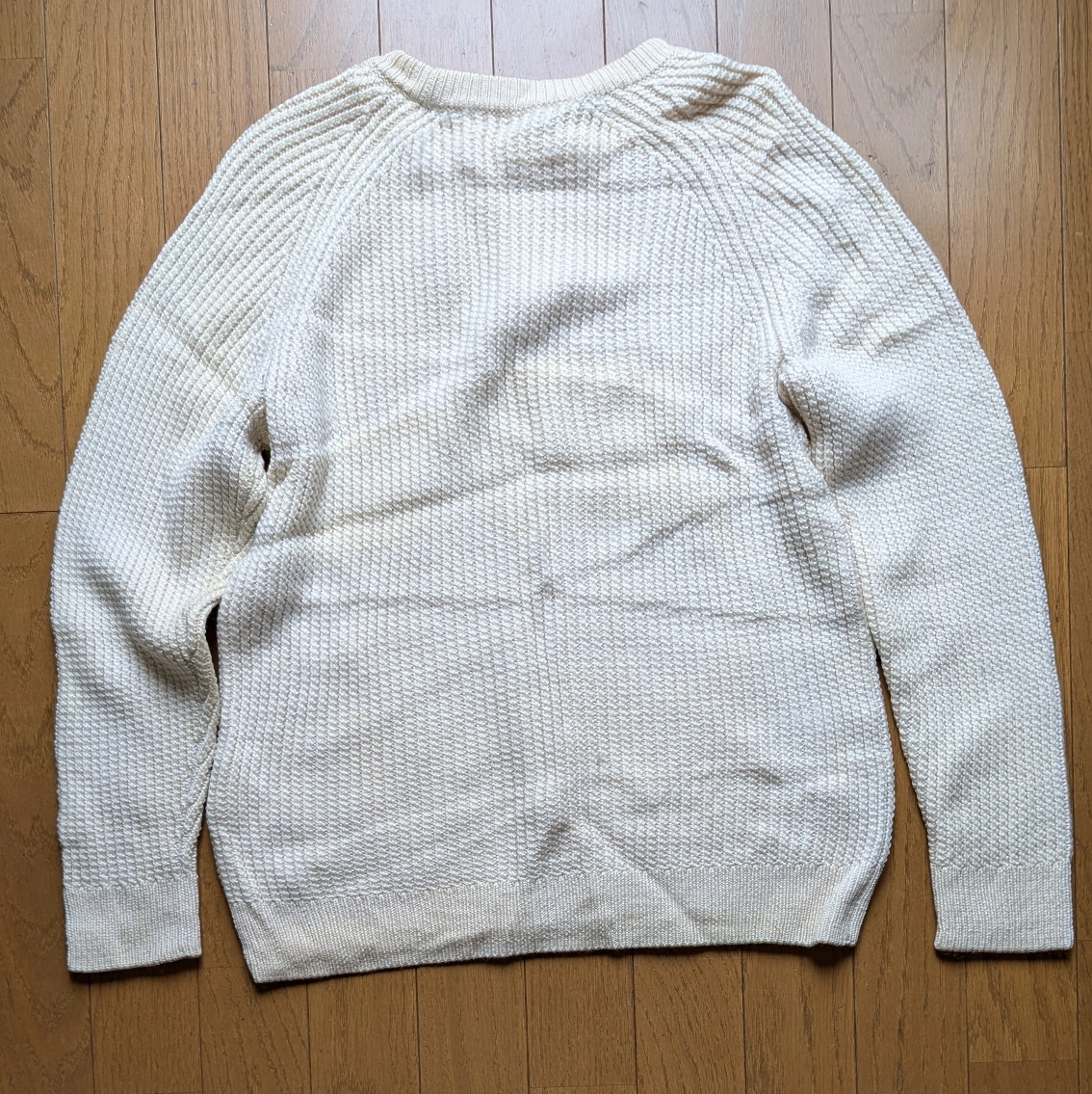 以前購入したBEAUTY&YOUTHのウール100%ホワイトニットです。 きれいめなシルエットで防寒性もバツグンです。 経年劣化による背中のシミがありますがまだまだ重宝する一着です。 ~以下サイト引用~ 凹凸があり表情豊かな畦編みのニット。単色使いならではの着こなしやすさも魅力です。サイドからフロントに入った斜めのラインがアクセントとして効果を発揮しています。シルエットは細身ですっきりとしたコーディネートを演出。風合いは柔らかく、軽く暖かな着心地です。 https://wear.jp/item/5880664/ 身幅...43cm 袖丈...66cm 着丈...52cm カラー...ホワイト