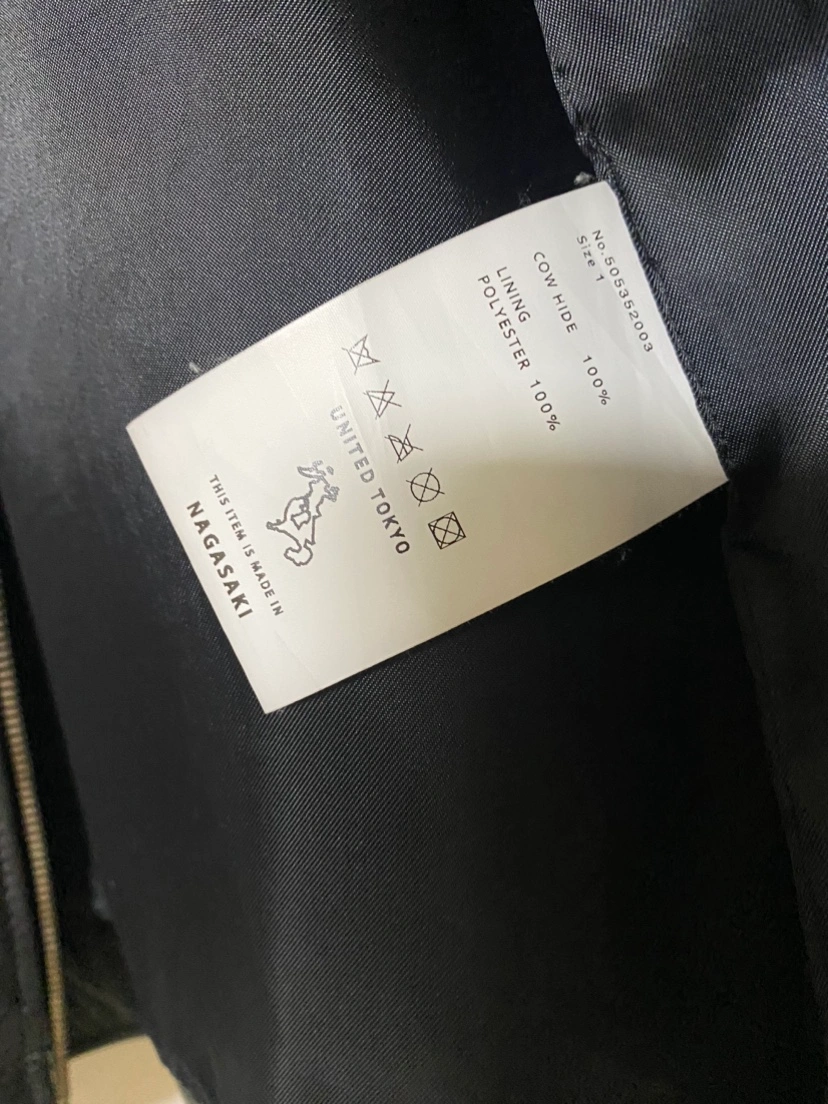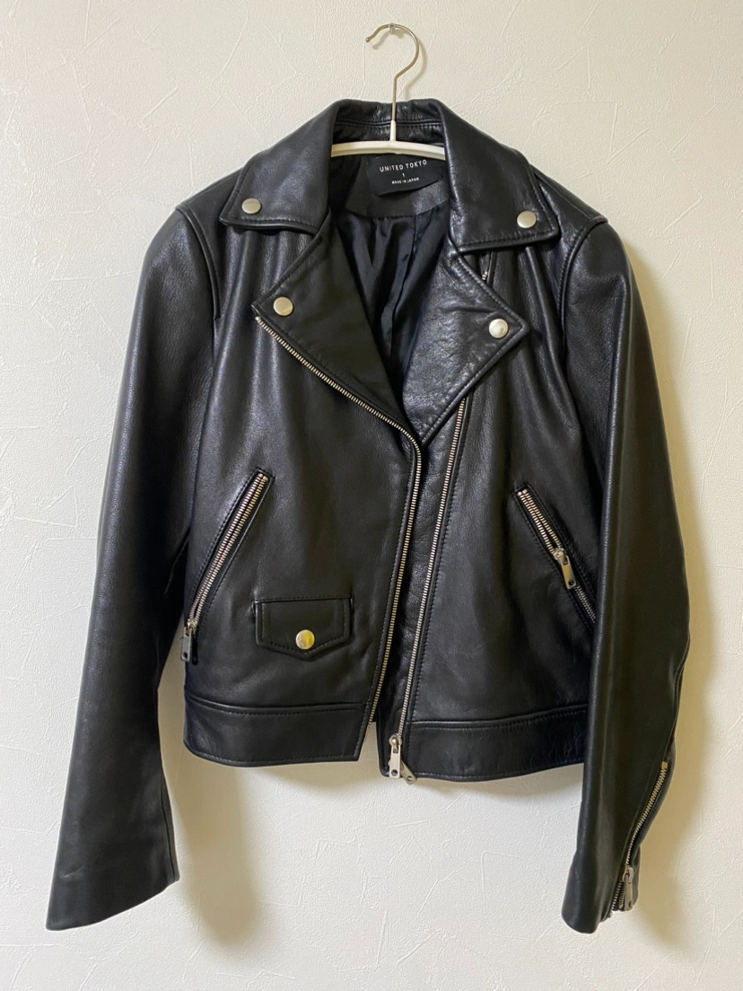 数年前に購入し、ワンシーズンのみ着用。 その後自宅にて保管していました。傷汚れなくまだまだ着ていただける良品ですが、中古品にご理解のある方に。 非喫煙、ペットなしです。 サイズがきつくなってしまったため、お譲りいたします。 サイズ 1 (Sサイズ目安) 素人採寸のため、ご了承ください。 身幅 約43cm 肩幅 約35cm 着丈 約50cm #unitedtokyo #ライダース #牛革 #カウレザー レザー素材···本革(カウレザー) 裏地素材…ポリエステル100% カラー···ブラック