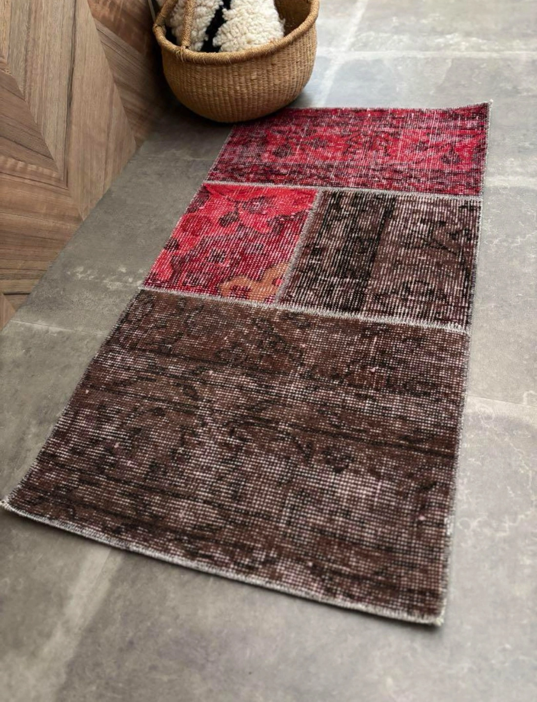 トルコのアナトリアで作られたvintage ラグです。 現地でパッチワークを施されているので、更に状態の良いものに仕上がり、バランスの良いデザインで使いやすいvintageラグとなっています。 チクチクせず、触り心地の良いラグです。 玄関やベッドサイド、2人掛けソファーの前などにもお使いいただけて可愛いかと思います! 国:トルコアナトリア 年代:1960年代 大きさ:50cm×98cm 素材 : ウール、コットン 現地にてクリーニング済みとなっているので、すぐにお使いいただけます。 ※お手入れ方法:ドライクリーニングのみ 日常的なお手入れは、ホコリやゴミ等を掃除機で吸い取り、時々日陰干しにしてください。 折りたたんでの発送となります。