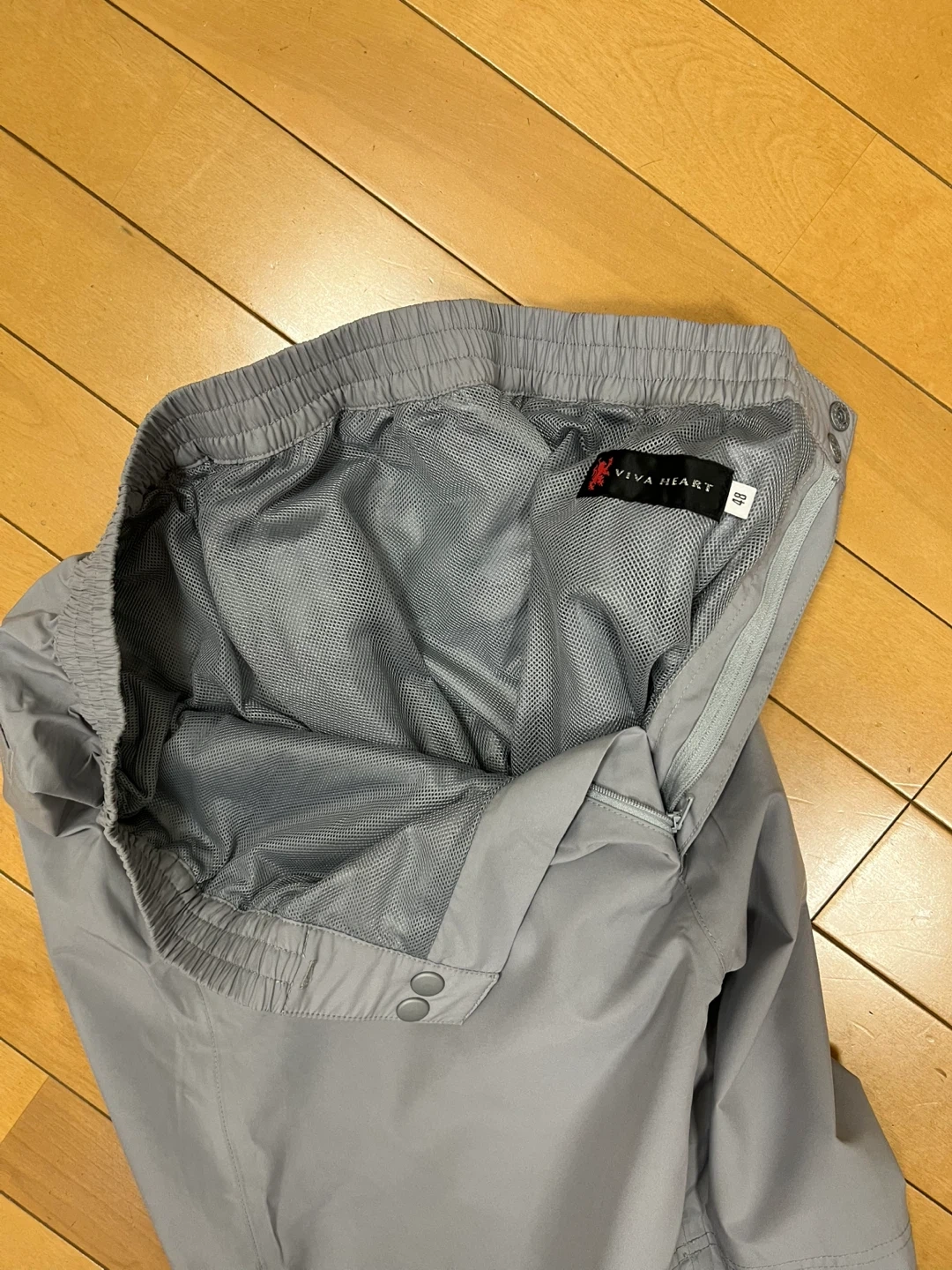 VIVA HEART レインウェア 上下セット サイズ:48 (M) 専用袋あり 急遽の雨でゴルフ場で購入したもので、 それなりの値段だったと思います。 着用少なめですが、雨のラウンドで着用してますので、見落としあるかもしれません。 またホームクリーニング済みですので、防水スプレーはしたほうが良いかと思います。 ※他にも格安で出品していますので、  是非ご覧ください。