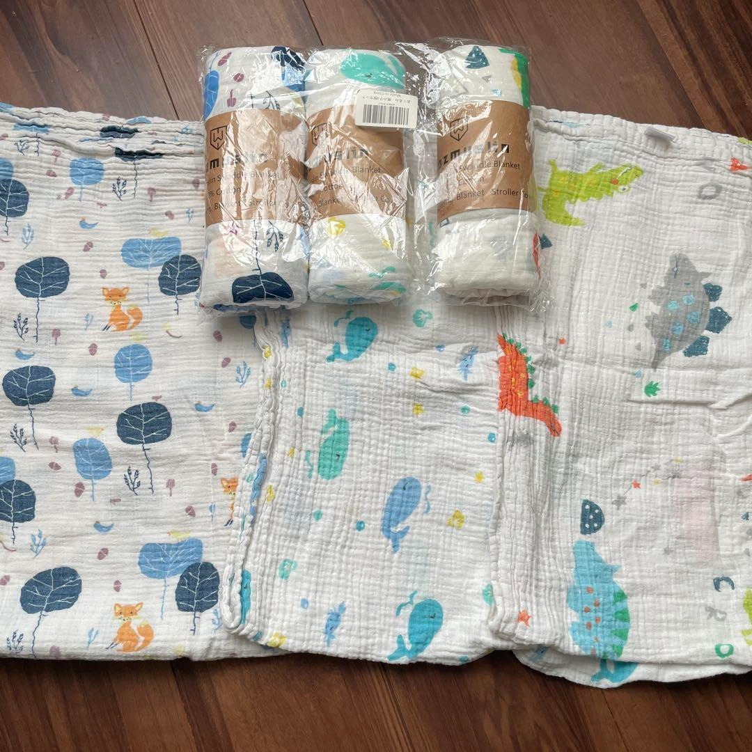 100%コットン製スワドルブランケットです。 キツネ柄、クジラ柄、恐竜柄の3枚セットです。 - ブランド: wbzmuslin - 素材: 100% コットン - タイプ: スワドル・ブランケット - デザイン: キツネ柄、クジラ柄、恐竜柄 - 用途: おくるみ・寝具・ベビーカーカバー ご覧いただきありがとうございます。 新品、未開封です。 サイズは、100×100です。選択がなく95cmとしています。 2セット購入したうちの使用していたブランケットを計りました。 3種類の柄も使用したものを広げてみたので、確認してください。 また、未使用品の母子手帳ケースもあるのでそちらもお使いいただけたらと思います。 その他ご質問などありましたら、ご連絡ください。 よろしくお願いします。