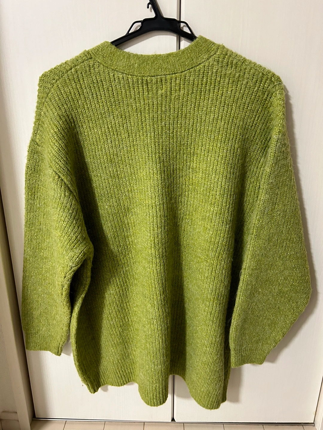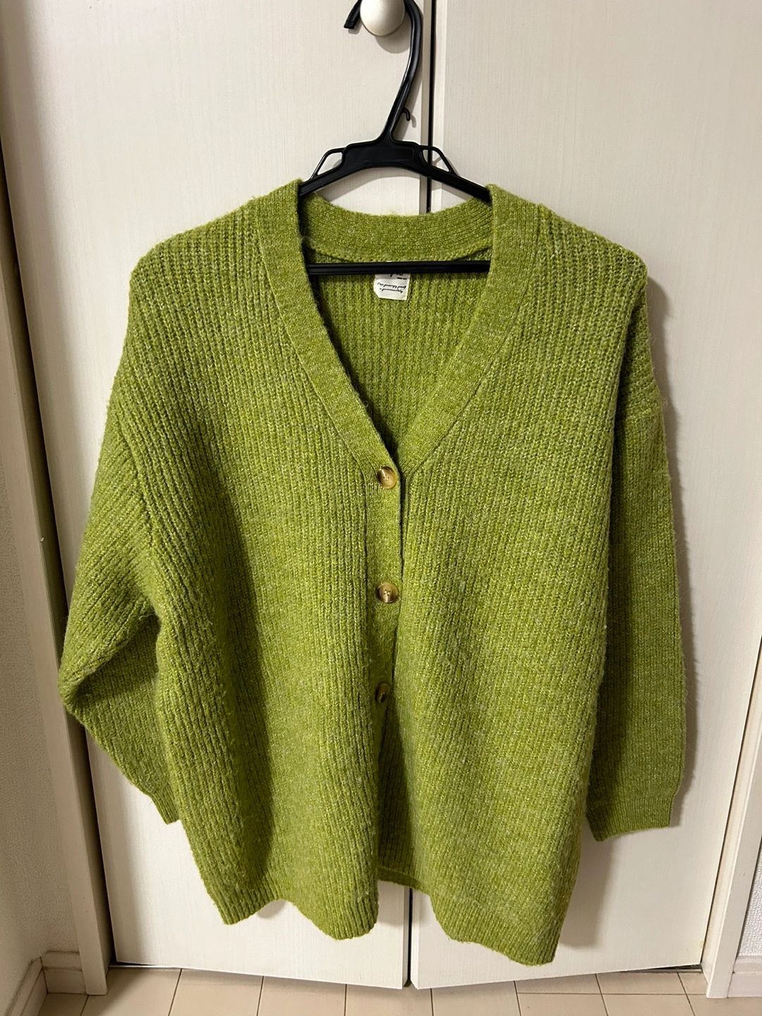 ungridの人気カーディガンです! あまり活躍できなかったので、お譲りします☺︎ 購入後5回程度の着用かと思います! 定価7150円 以外引用です! ■デザイン 他には無い、映えるカラー展開と、ルーズなサイズ感がカジュアルで可愛い アイテム。 太めの糸をざっくり編んだローゲージの片畔編みで、大きめのマーブルボタンも、Ungrid(アングリッド)らしいカジュアルなポイントです。 まだまだアウターは早い時期に羽織として着回しが効くアイテムです。 腰からヒップがすっぽりかくれる着丈です。 ■生地感 ふわっとした柔らかさで着心地が良く、ウールも少し入っているので暖かみがあります。 ■スタイリング スカート、パンツ、ワンピース、デニム、、、様々な雰囲気で着回しができるアイテムです。 今期はルーズデニムとのスタイリングもおすすめです。 素材 アクリル53% ポリエステル23% ナイロン10% 毛8% ポリウレタン6% サイズ FREE 身幅65肩幅 55着丈63.5そで丈48重量約608g