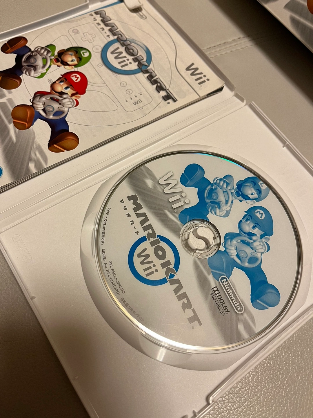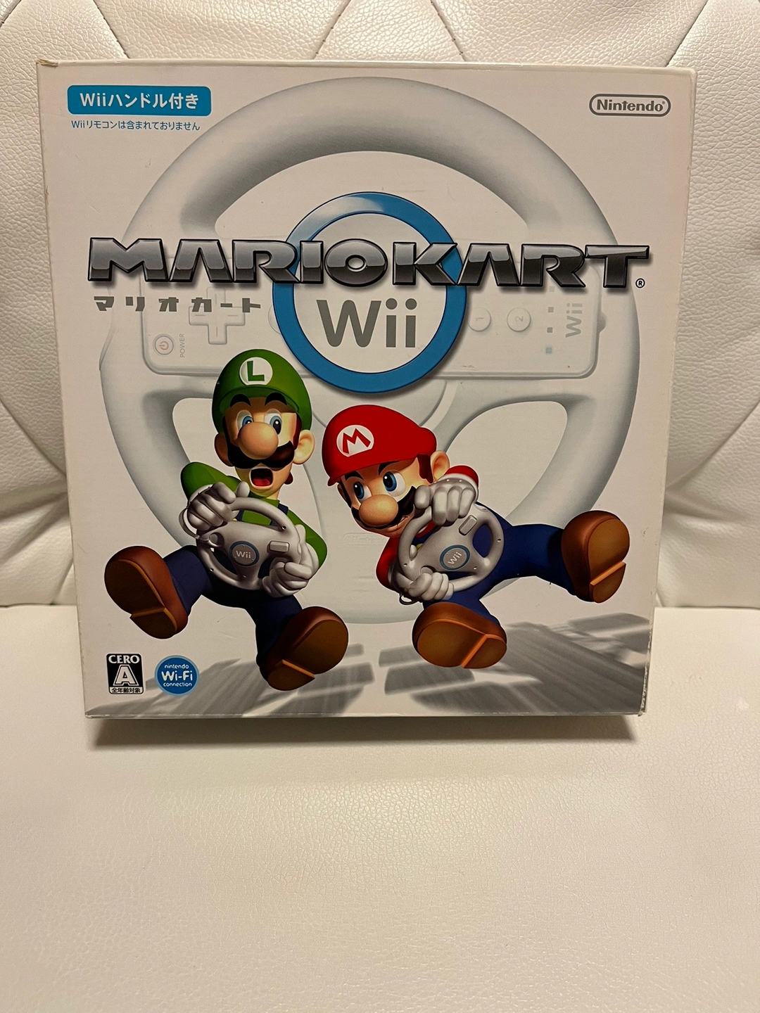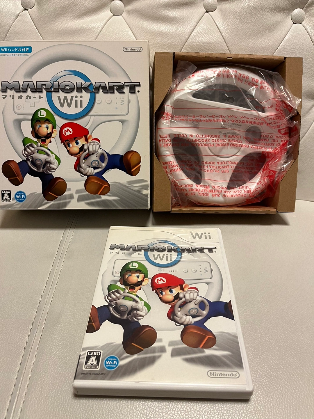 「マリオカートWii」 任天堂 定価: ¥ 5524 ハンドルは1.2回使用した程度なので状態は良いです。ディスク共に動作確認済み。