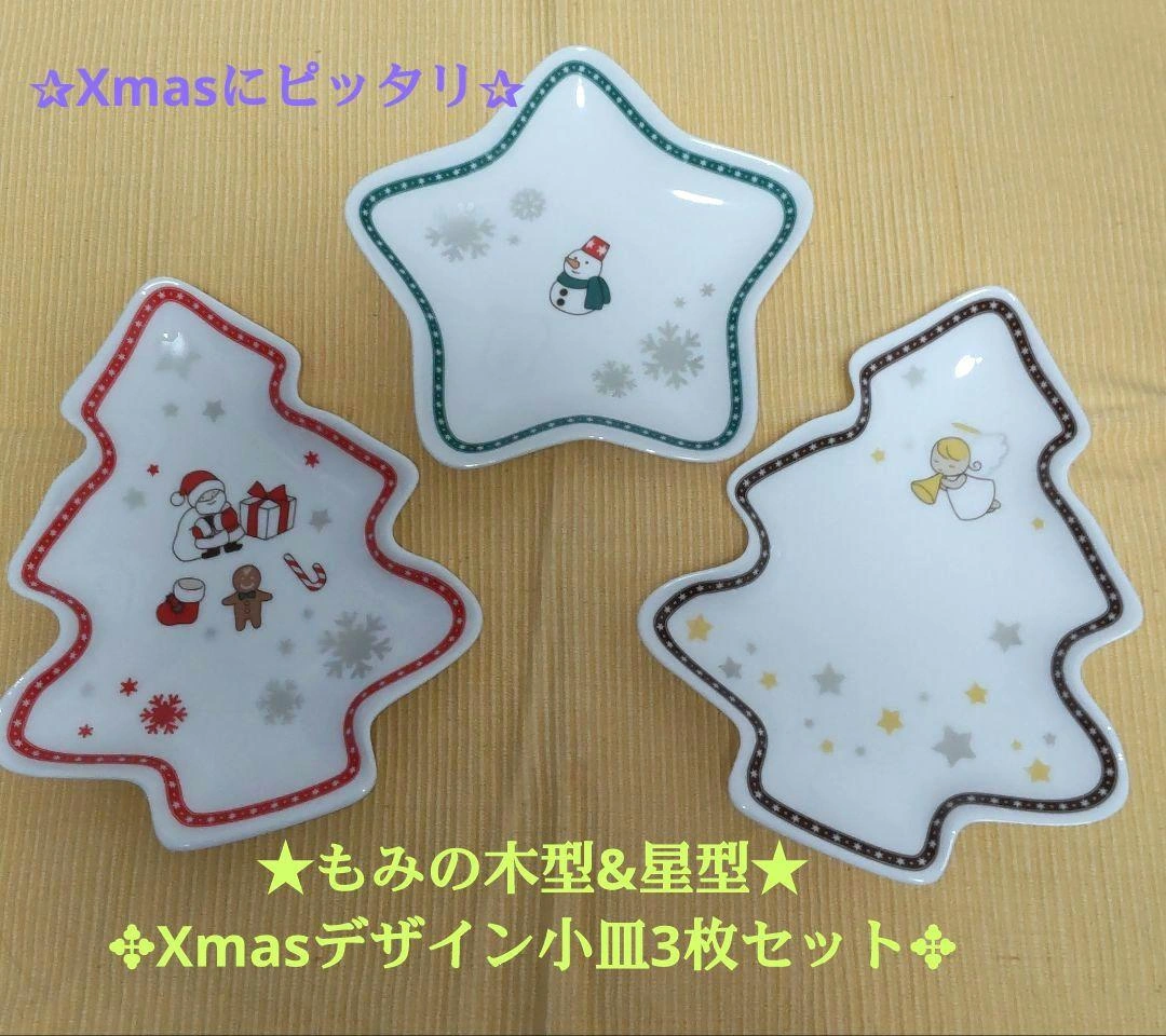 ❦Xmasにピッタリ【もみの木型2枚&星型1枚】小皿3枚セット★