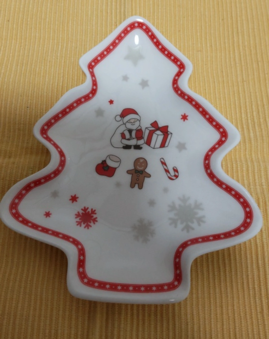 クリスマスデザインのもみの木型皿2枚と星型皿1枚、サンタクロース・雪だるま・天使のイラスト付き。 - デザイン: もみの木型・星型の皿、クリスマスデザイン - 色: 白、赤、緑、茶色 - キャラクター: 雪だるま、天使、サンタクロース - 数量: 3枚セット - 素材: 陶器 こちらは譲り受け品で、かなり古いものの様ですが、使用感は殆ど無いです。 天使の絵柄の皿は、よく見ると傷が数カ所ありますが、状態は悪くないと思います。 3枚とも、目立った汚れは無いと思います。 とても可愛らしい絵柄なので、飾りものとしても良いと思います。 サイズは、最長で、もみの木型...縦幅約16cm、星型...幅約14cmです。 クリスマス用に、是非いかがでしょうか。 中古品ですので、商品の状態をご理解頂ける方のご購入をお願い致します。 ご検討宜しくお願い致します。 #未使用に近い #クリスマスデザイン #星型 #もみの木型 #小皿3枚セット #雪だるま #サンタクロース #天使