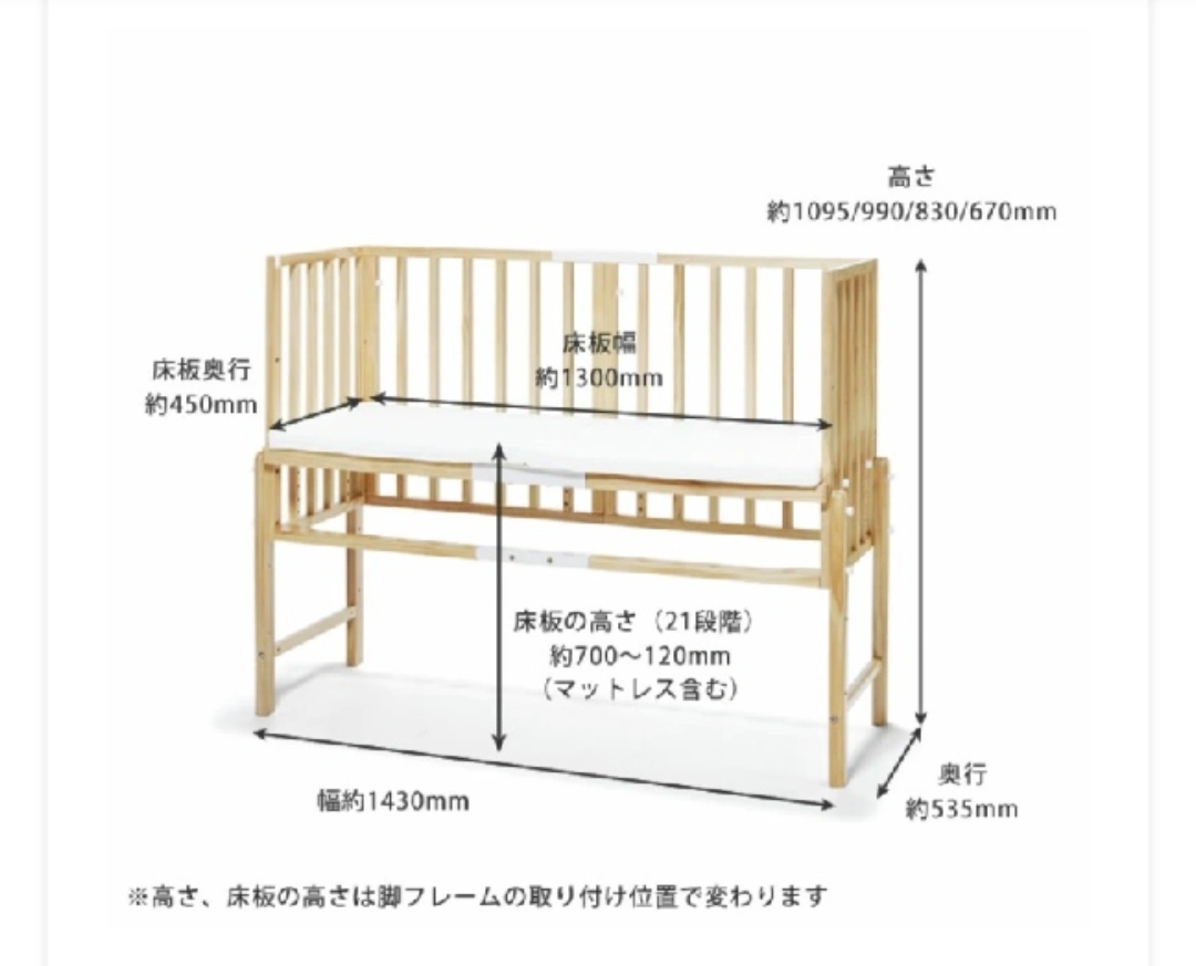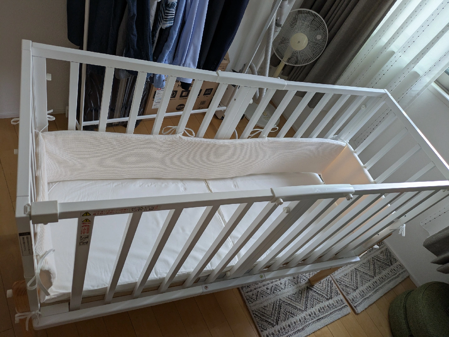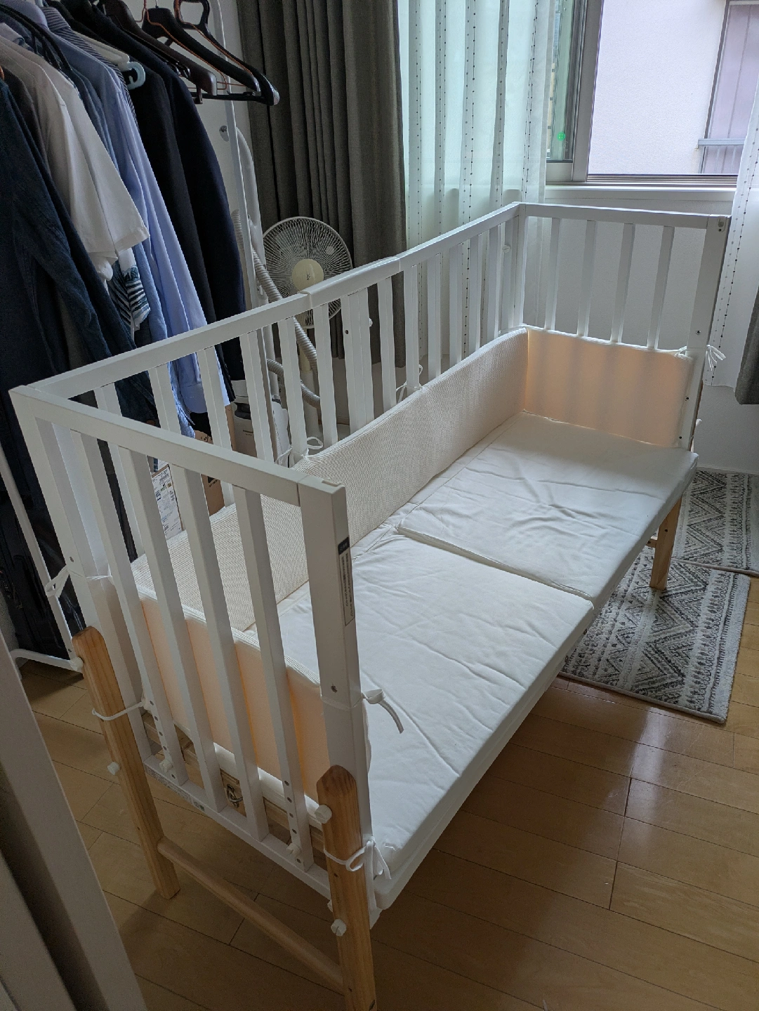 ベビーベッド卒業後にどこに寝かせるか悩み、 親のベッドに接続できるコチラを購入しました。 全体的には綺麗だと思うのですが、 おむつ入れを吊るしていたため、 1面に傷があります(写真3枚目)。 ・色:白 ・全体的にきれい ・小さなキズあり ベッドガードは問題ないのですが、 マットレスにはシミがあるので、 新しく購入いただいたほうが良いと思います。 (メーカーでマットレス販売中) 車で取りに来ていただく必要がありますので、 確定しましたら、お取り引きの場所等は 調整させてください。 中古品であることご了承ください。