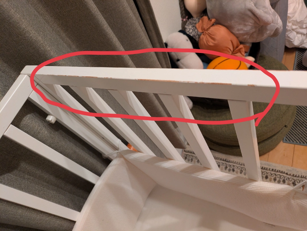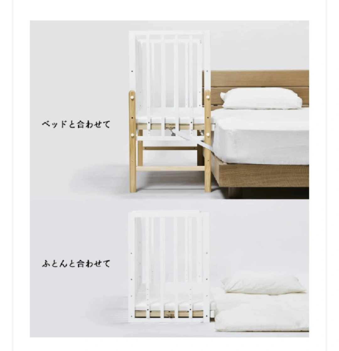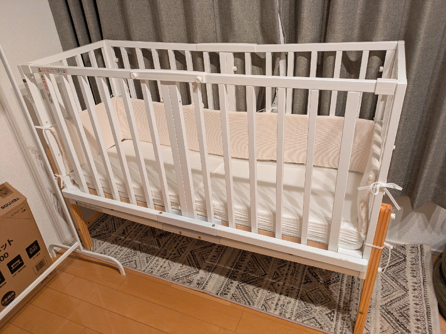 ベビーベッド卒業後にどこに寝かせるか悩み、 親のベッドに接続できるコチラを購入しました。 全体的には綺麗だと思うのですが、 おむつ入れを吊るしていたため、 1面に傷があります(写真3枚目)。 ・色:白 ・全体的にきれい ・小さなキズあり ベッドガードは問題ないのですが、 マットレスにはシミがあるので、 新しく購入いただいたほうが良いと思います。 (メーカーでマットレス販売中) 車で取りに来ていただく必要がありますので、 確定しましたら、お取り引きの場所等は 調整させてください。 中古品であることご了承ください。