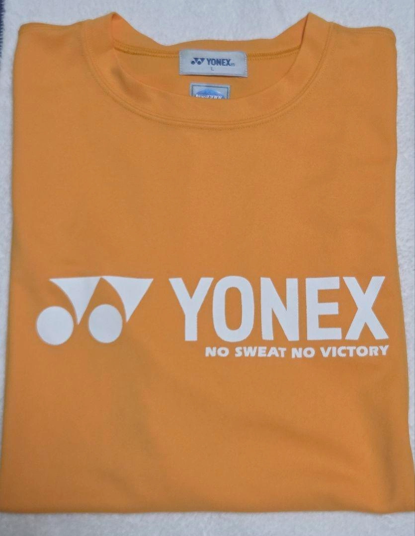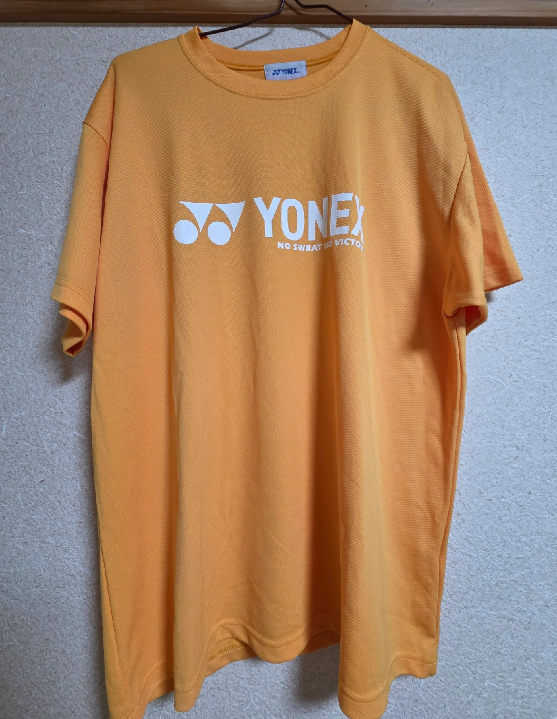 メンズ(Lサイズ) オレンジ色のYONEX Tシャツ、スポーツに最適なデザイン。 - ブランド: YONEX - カラー: オレンジ - スローガン: NO SWEAT NO VICTORY - スタイル: Tシャツ - 背面デザイン: 無地 ご覧いただきありがとうございます。 ご希望の方はお気軽にご連絡ください。