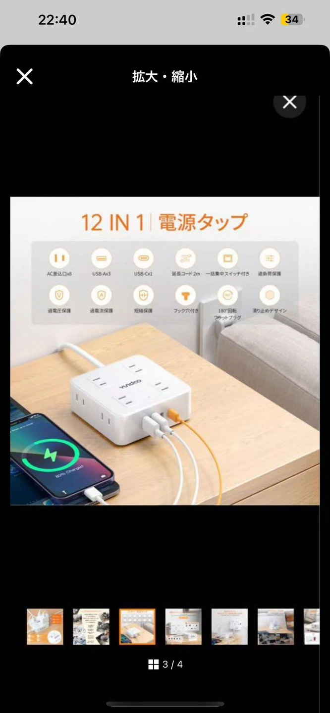 【情報】 ブランド:yundoo 種類:多機能電源タップ 型番:ZYC13 AC差込口:8 USB-A:3 USB-C:1