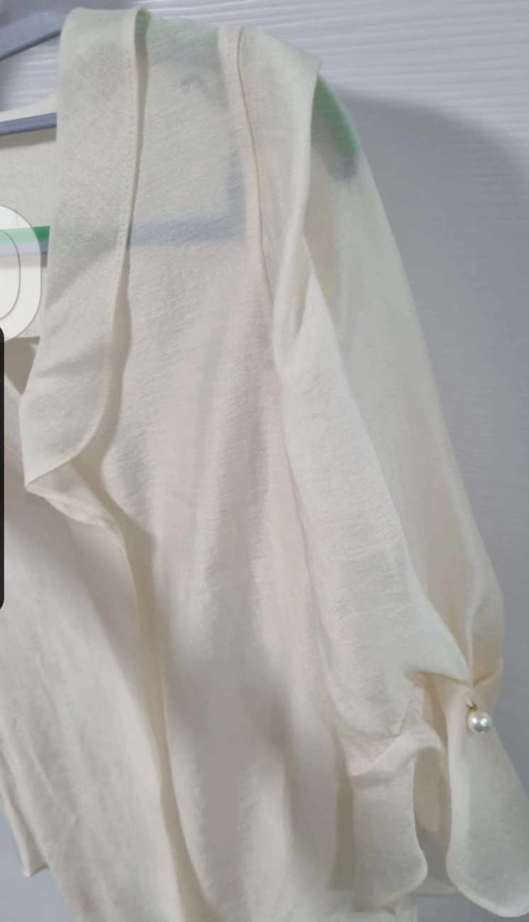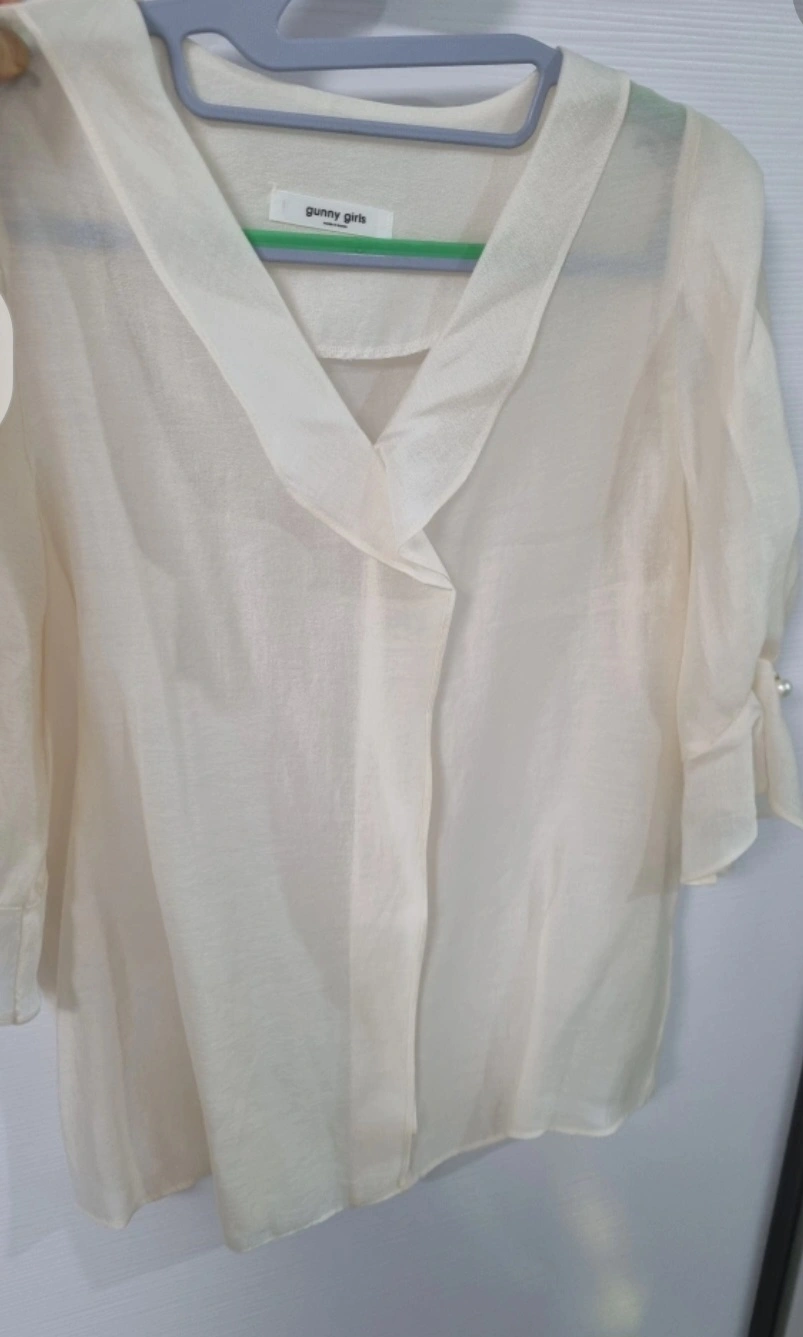거니걸스 프릴블라우스입니다~ 아이보리 색상에 7부 소매, 진주 디테일까지 더해져 여성스러운 느낌을 줍니다. 부드러운 소재로 편안하게 입을 수 있어요~ 새옷입니다 55~77까지 가능한사이즈