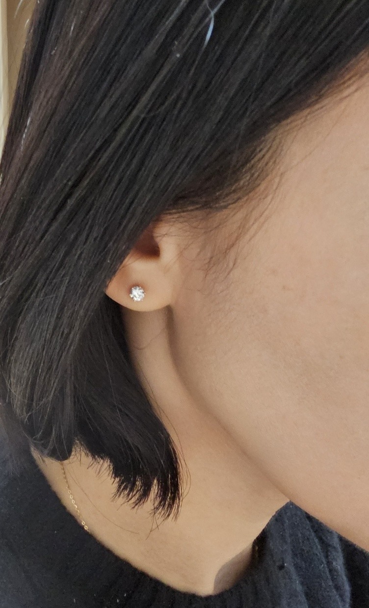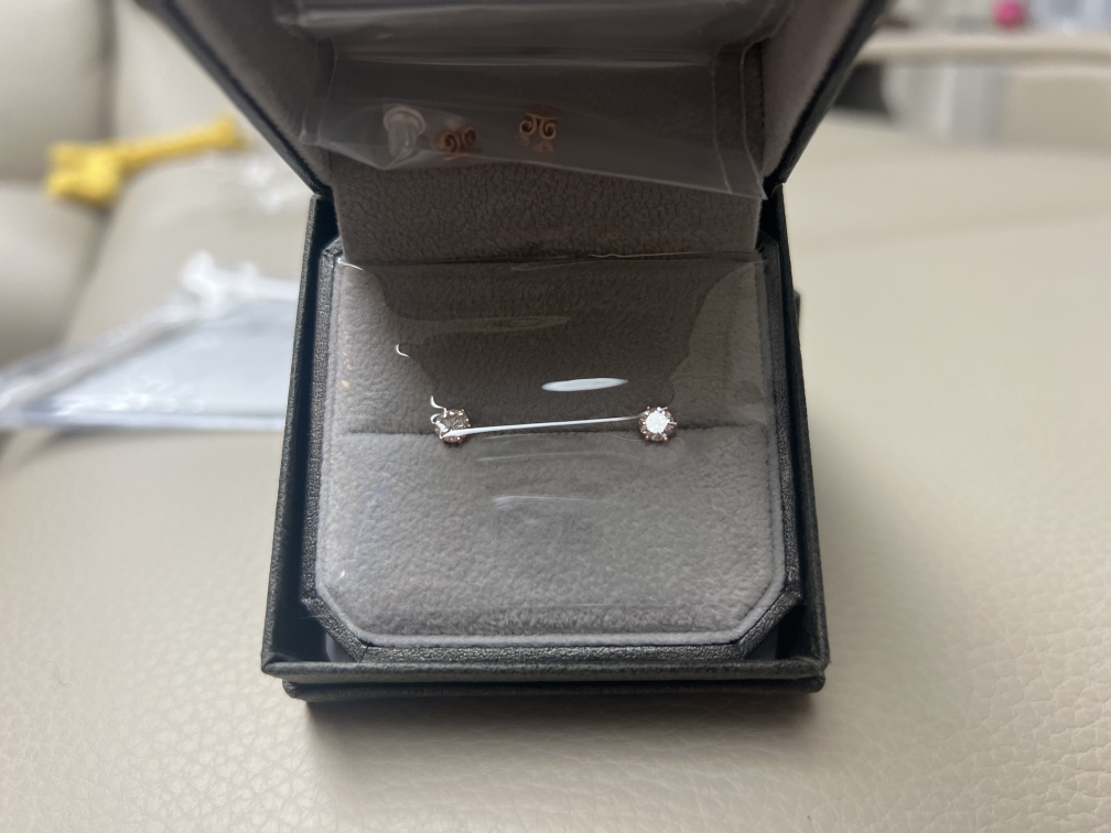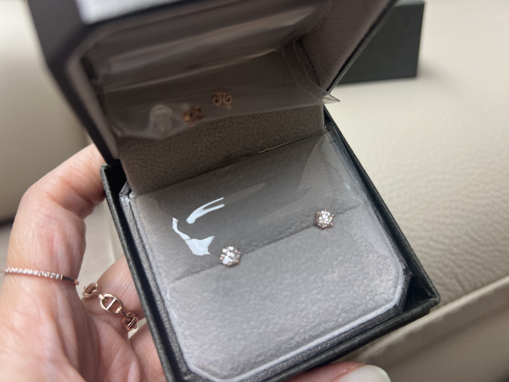 2024년. 4월 구매. 미개봉 미착용 랩다이아 3부 14k 로즈골드 귀걸이 새상품입니다. 착용샷은 같은 제품 두개 사서 언니가 언니꺼 착용한 사진 입니다. 크기감 참고하시라고 올립니다. 구매가 43만8천원입니다. 35만원에 판매합니다.