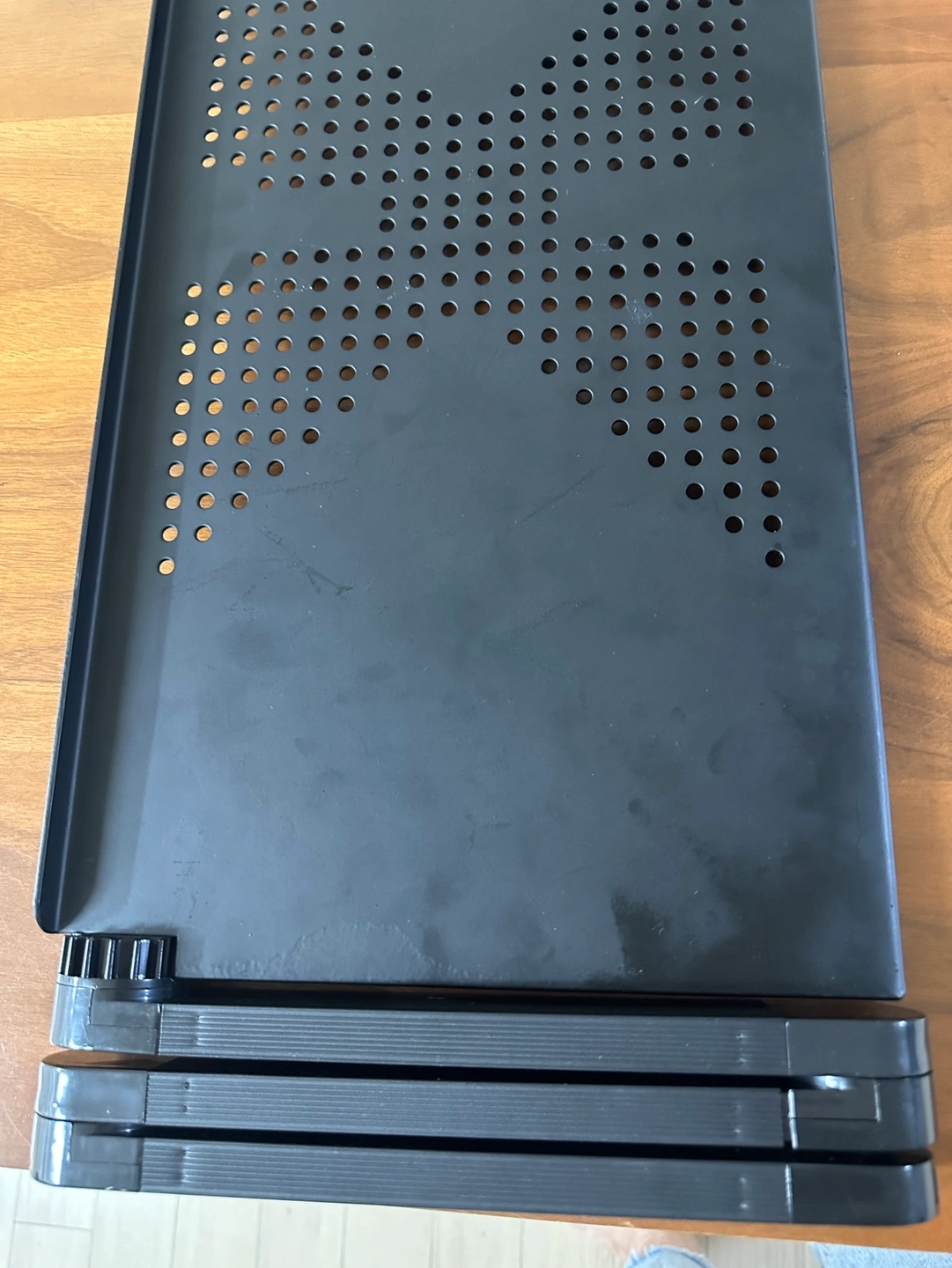 침대위 노트북용 거치대입니다. 완전 납작하게 접히고 모든 다리 관절이 360도 조절 가능합니다. 노트북 떨어지지 말라고 빋침대 있습니다. 고무 거치대는 분실했어요 ㅠ 깁스하는 동안 사용했는데 이제 필요가 없어져서 내놓습니다. 사용감 있고 중고 특성상 환불 안됩니다. 가벼운 가격에 유용하게 사용하실 분께 권합니다. (스펙은 쿠팡페이지 참조) 쿠팡을 추천합니다! 침대 누워서 노트북 거치대 높이조절 받침대 https://link.coupang.com/a/bQz5G2 부피감있어 택배 불가, 신논현역 8번 출구 직거래 선호