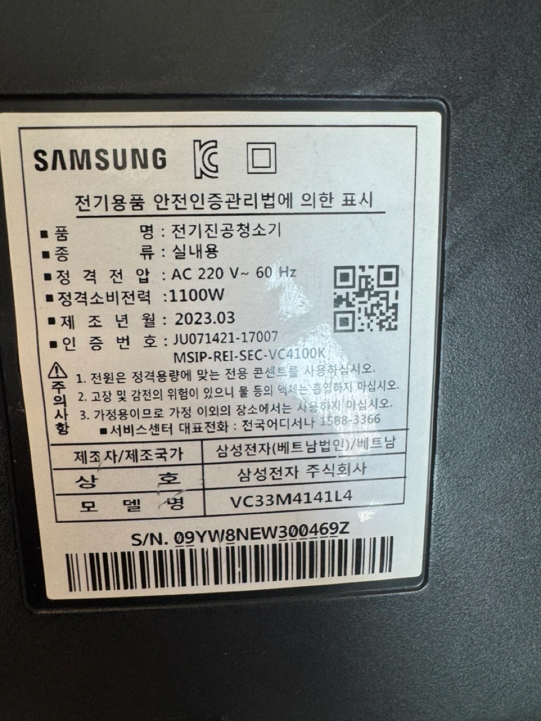 삼성 VC33M4141L4 청소기 내놓습니다.최근 필터/흡입헤드 분해정비/전체점검 삼성전자에서 완료했습니다. 비용 35000원 나왔습니다. 세부사진 올렸습니다.참고하세요. - 먼지통 용량: 2L - 소비전력: 1100W - 색상은 예쁜 민트그린입니다 - 크기: 272x234x398mm, 무게: 4.3kg - 싸이클론 포스 기능으로 흡입력이 좋아요 - 알레르기 필터 장착 사진 보시고 편하게 연락 주세요! 필요하신분 연락주세요. 문고리 거래선호 합니다.