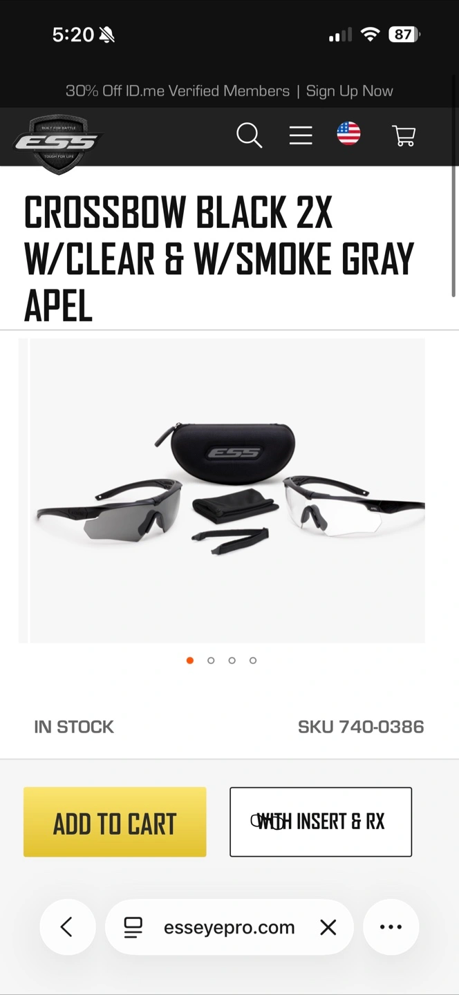 (새상품) 미군 고글 아이프로 ESS Crossbow Black 2X