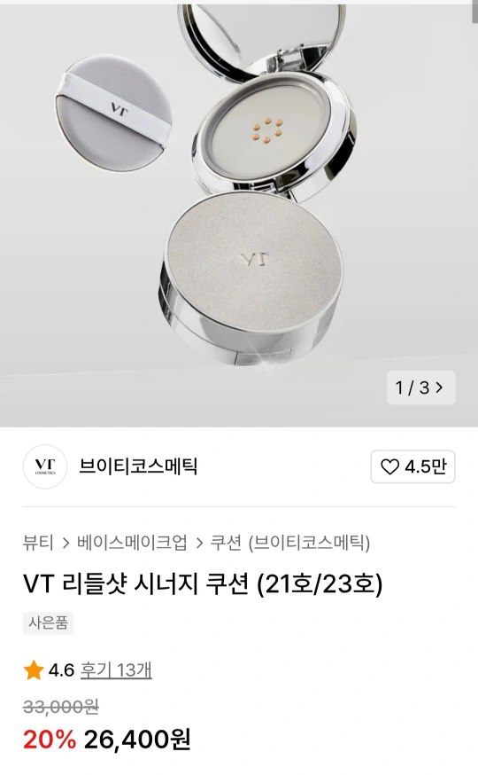 (새상품)VT 브이티 리들샷 시너지쿠션
