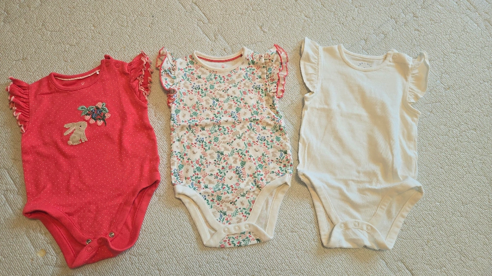1. Pretty baby bodysuit size 73/ 6m-9m. worn only 1 or 2 times 2. Pretty baby bodysuit size 66 (3-6m). worn 1 or 2 times. has light stains but can be removed. with bonnet. 3. Blue baby bodysuit 4. M&S baby bodysuit 6-9 months 5. Carter's bodysuit 6m worn only 1 or 2 times 6. Mothercare bodysuit set 6m - very good condition, worn only few times. pants have frill on the back. 7. Set of 3 bodysuits All clothes worn only 1 or 2 times. price is 5000 won for each If you buy in bulk I can ship for free. CU반값 택배. pick up near sinnonhyeon station
