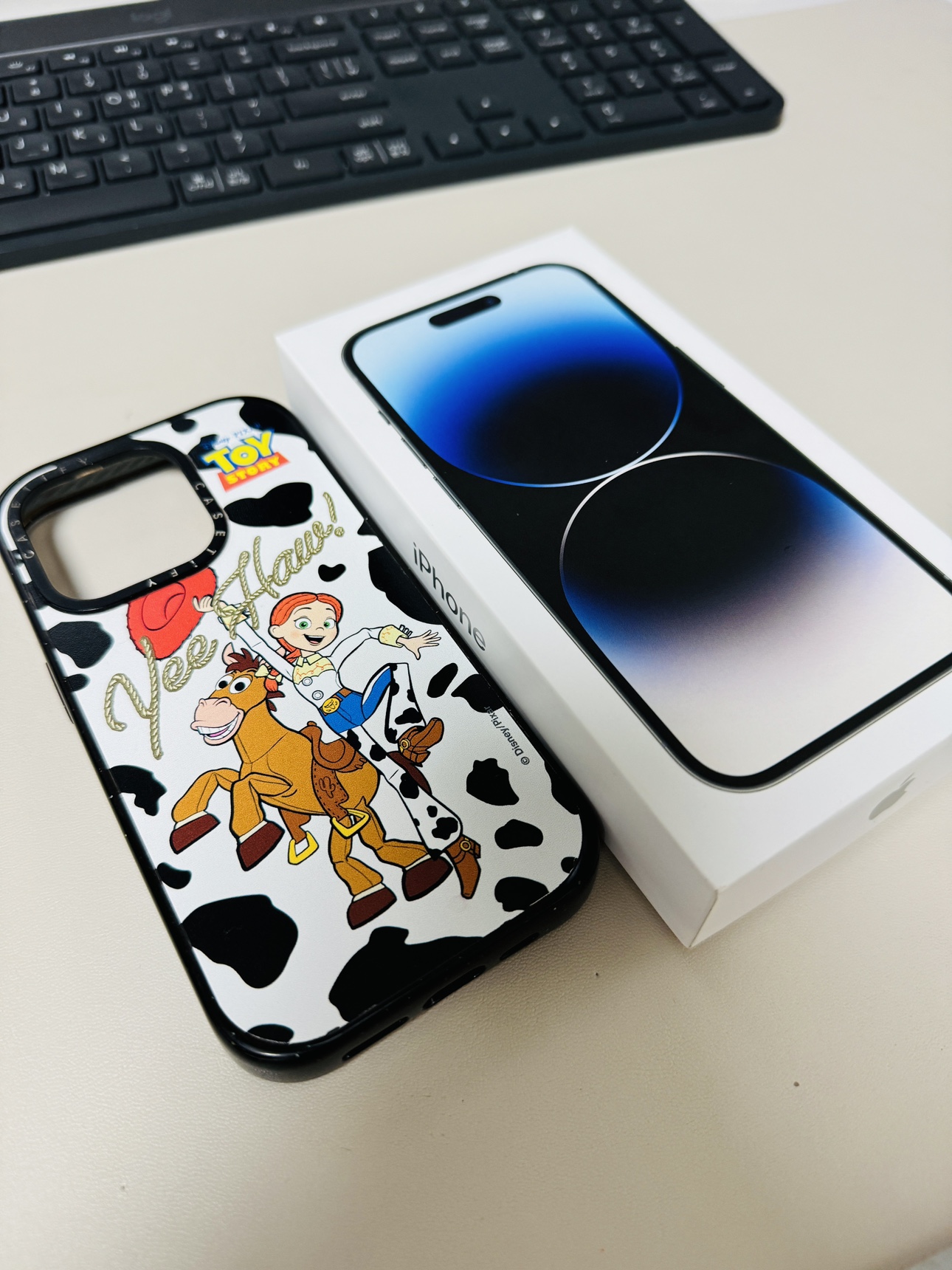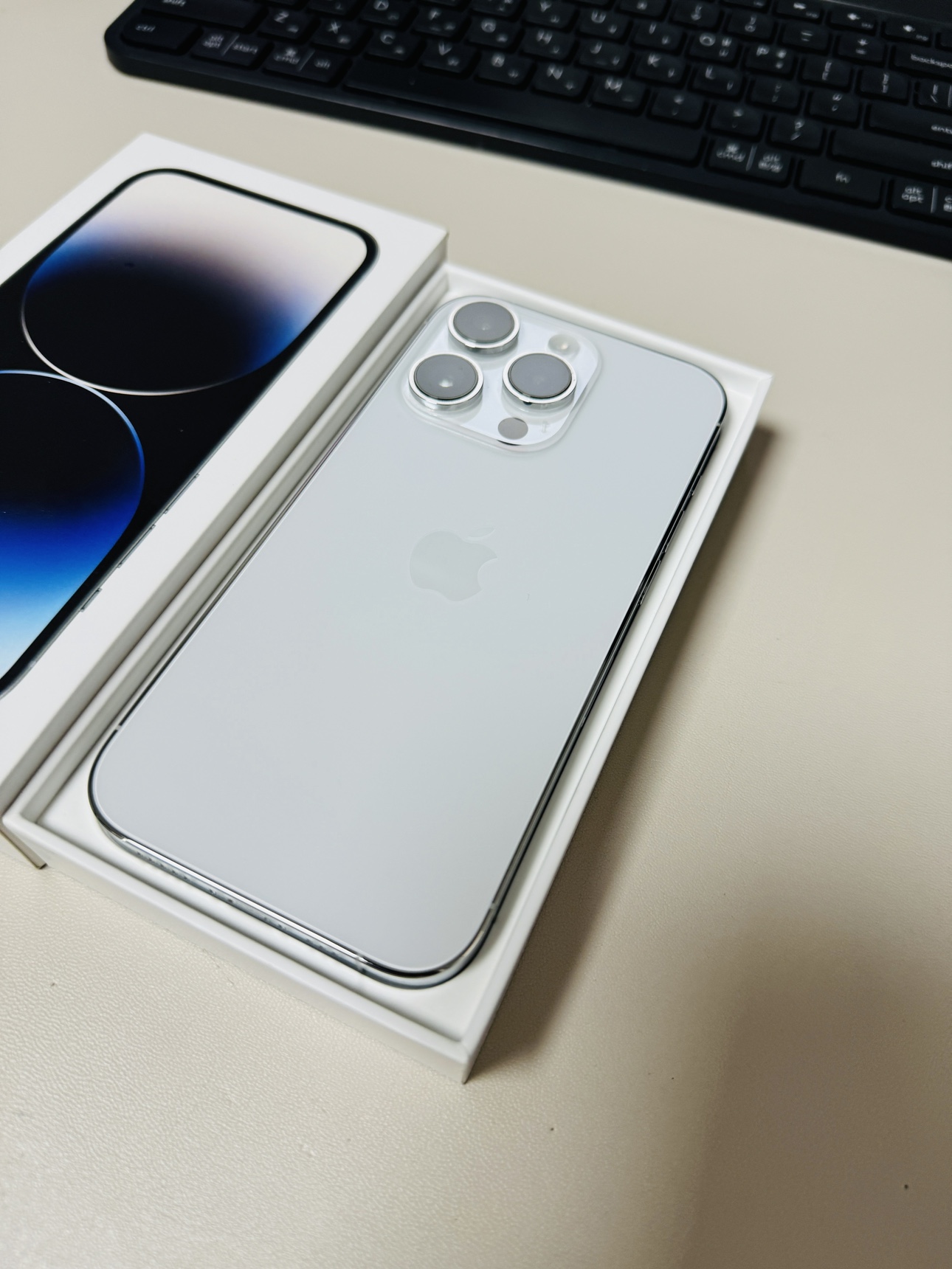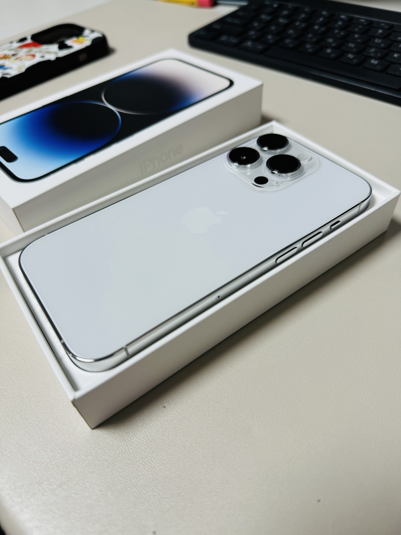아이폰 14 프로 모델입니다. 256기가이며 기스나 흠집 일절 없습니다. 15나오기 바로직전 구매하고 스튜디오 촬영용으로만 사용했어요. 구성품으로 풀박스와 케이블, 케이스티파이 케이스 (8만원) 같이드립니다.