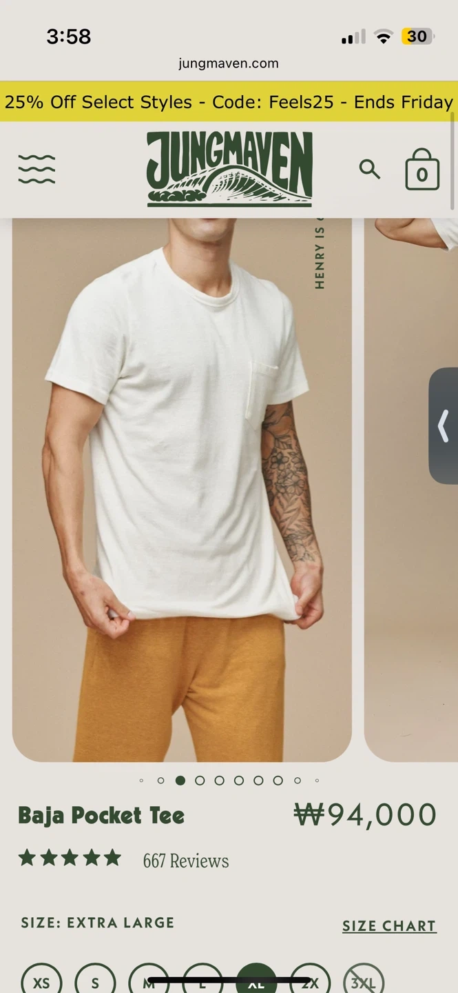 영메이븐 Jungmaven Baja 포켓 티 XL