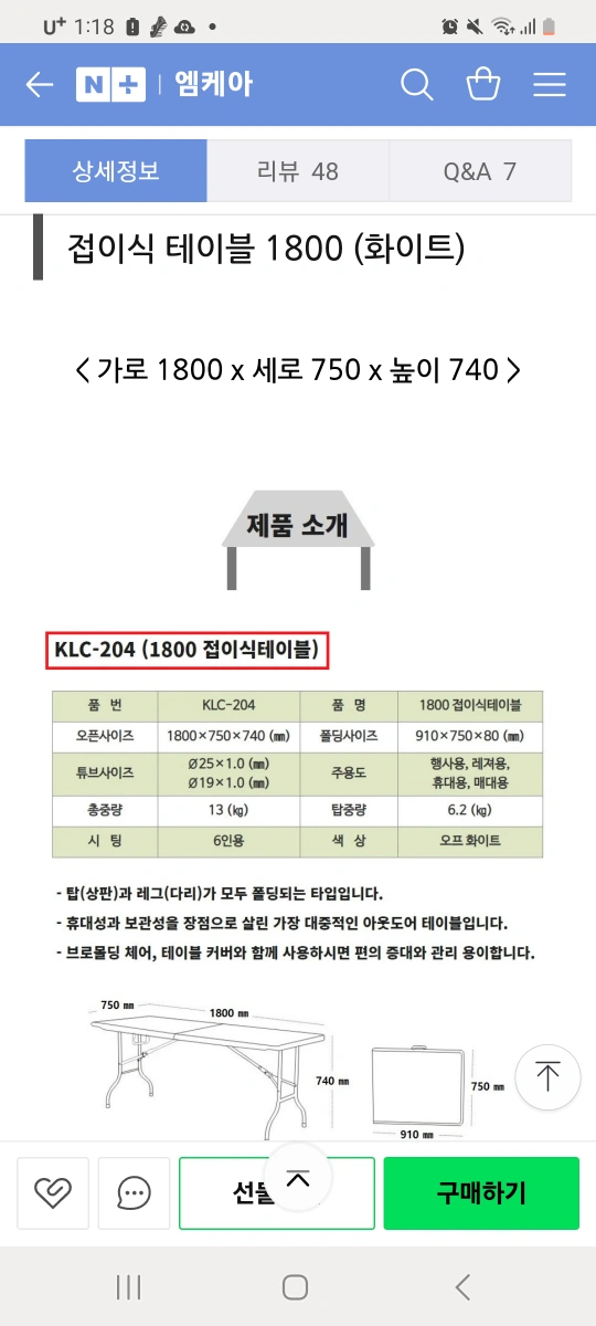 접이식 테이블(1800, 화이트) 판매합니다. 작게 접혀서 보관이 용이합니다. 2022년 구매후 집들이 할때 2번 정도 사용하고 계속 보관만 했습니다. 아래사이트 1800 화이트이니 참고 부탁드립니다. 강남역 부근에서 직거래 가능합니다. https://m.smartstore.naver.com/mkea/products/5978923718?n_media=667909&n_rank=1&n_ad_group=grp-a001-02-000000045138745&n_ad=nad-a001-02-000000322841511&n_campaign_type=2&n_mall_id=ncp_1o5jb6_01&n_mall_pid=5978923718&n_ad_group_type=2&n_match=3&NaPm=ct%3Dm3bstjt4%7Cci%3D0Aa00035R31Bgrpr1fnY%7Ctr%3Dpla%7Chk%3D006bd8ba825751d83db09b30d47a90d546c882a4%7Cnacn%3Day53BYQJ4y3O