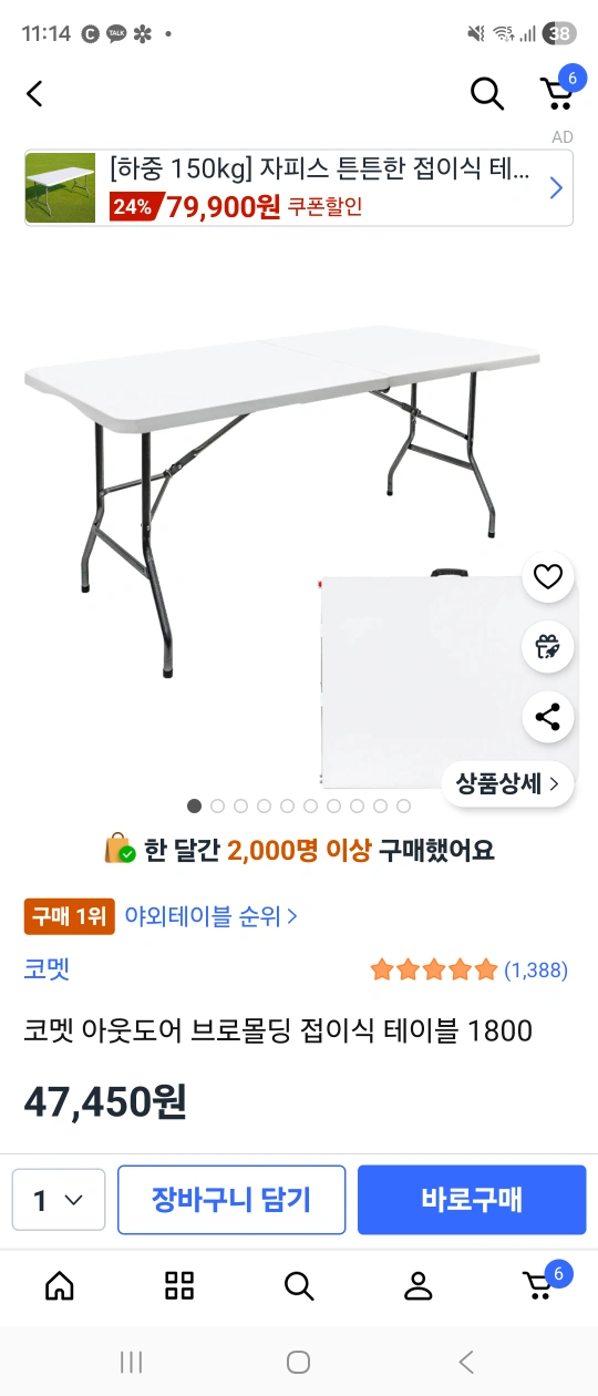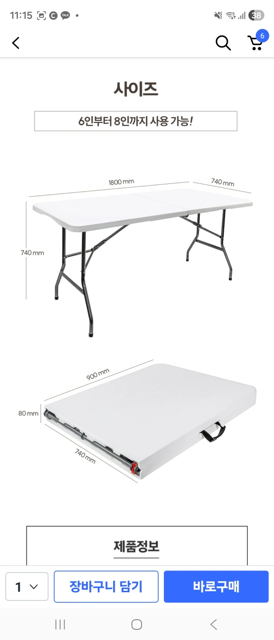 접이식 테이블 6-8인용(코멧 접이식 테이블 1800)