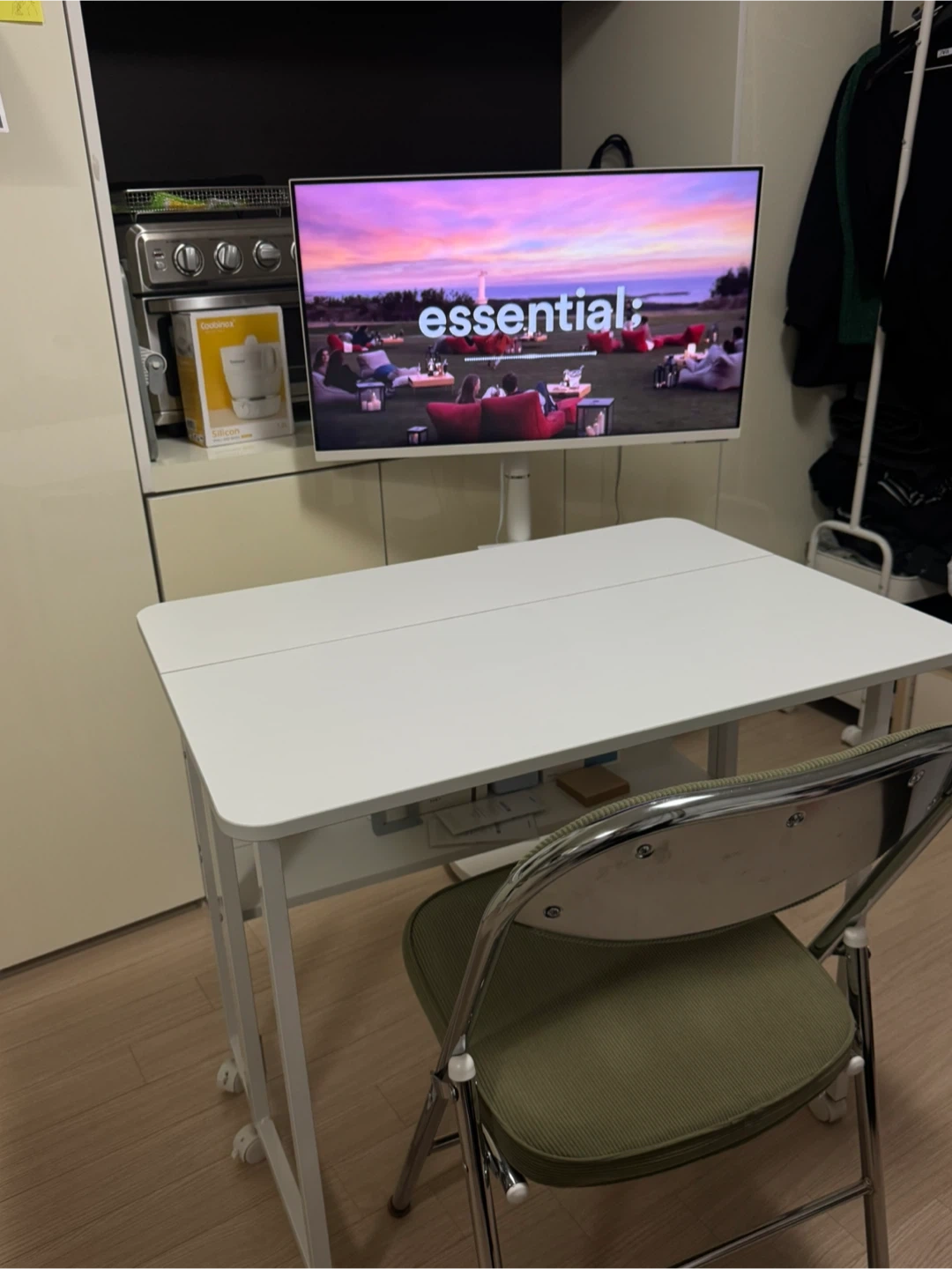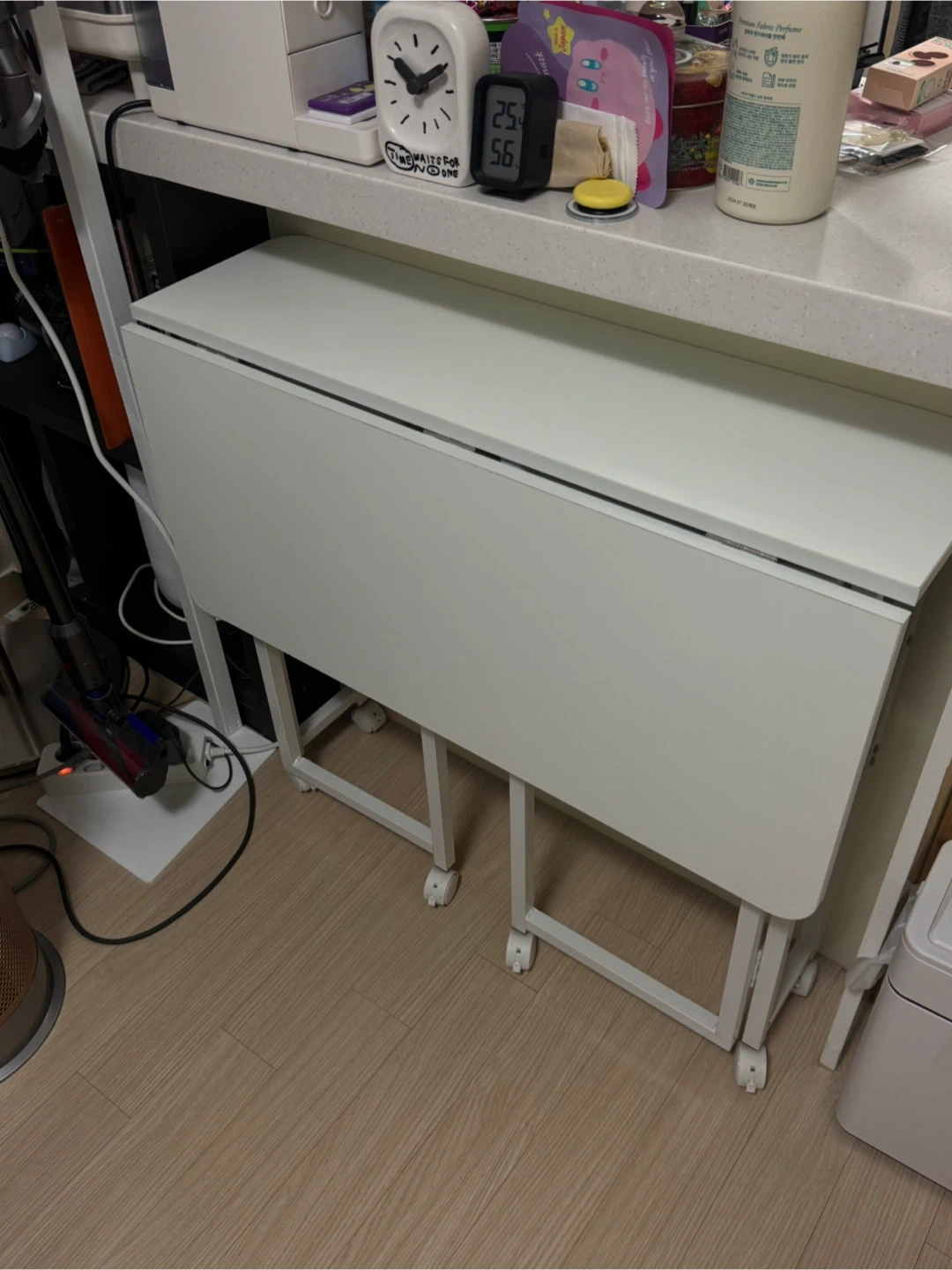 홈비 업그레이드 바퀴형 이동식 접이식 책상입니다. - 선반형 중형입니다. - 80x35x75cm (접었을때 두께 23cm) - 바퀴가 달려 이동이 편리하고, 접이식으로 공간 활용에 용이합니다. - 화이트 색상으로 깔끔한 디자인입니다. - 좁은 공간에서도 효율적으로 사용 가능합니다. - 조립 완료된 상태입니다. - 접은 상태에서도 아래에 책 등을 간단하게 보관할 수 있습니다. ✅ 11/17~30 중에 직접 가지러 오셔야합니다! 더 자세한 사항은 아래의 오늘의 집 링크에서 확인 부탁드립니다. https://ozip.me/k5oLjCH 편하게 연락주세요 :)