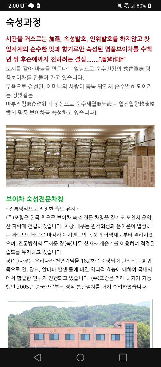 고급보이차⭐새상품 2005년 포랑산 야생 대하초 380g 입니다. 중국 전통의 운남성 포랑산 1750m 청정지역 야생에서 재배된 최고급 찻잎으로 만들어졌습니다. 정성스럽게 제조된 전통의 보이차이며 향과 맛의 풍미가 남다른 고급차입니다. 2005년도 제조되었고 전체 380g입니다. 용량은 최고급차를 150회분 즐기실 수 있습니다. 선물용으로도 좋은 최상급의 보이차 저렴하게 드립니다.