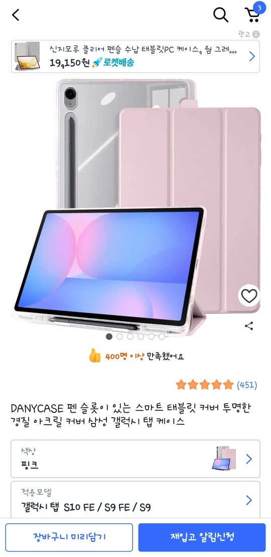 DANYCASE 펜 슬롯이 있는 스마트 태블릿 커버 투명 아크릴 케이스입니다 색상은 핑크색이고 갤럭시탭 S10 FE, S9 FE, S9 모델이랑 호환됩니당 새상품급으로 깨끗한 상태를 유지하고있어요! 펜 슬롯이 있어 S펜 보관이 용이하구 투명 아크릴 소재로 태블릿 본연의 디자인을 살려줍니다!! 9월11일에 샀고 포장지도 안봇진 완전 새거에요! 원래 s10 사려했는데 s10+로 사게되어서 사이즈가 안맞아서 팔아요ㅠㅠ 원가 14900원입니다!!