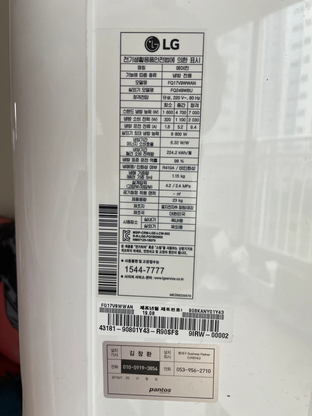 LG 휘센 스탠드 에어컨 FQ17V9WWAN 모델입니다 실외기 모델명은 FQ249WBU 입니다. 많이 사용하지않았고 상태정말 좋습니다. 직접와서 철거해서 가져가시는 조건입니다. - 냉방면적 29제곱미터 - ThinQ 기능으로 스마트하게 사용 가능 - 9.8kW의 강력한 냉방능력을 자랑합니다 - 인버터 에어컨으로 에너지 효율이 좋습니다 네고 가능합니다~ 합리적으로 가격제시해주시면 판매하겠습니다. 위치는 산격동 산격양우내안애아파트입니다.