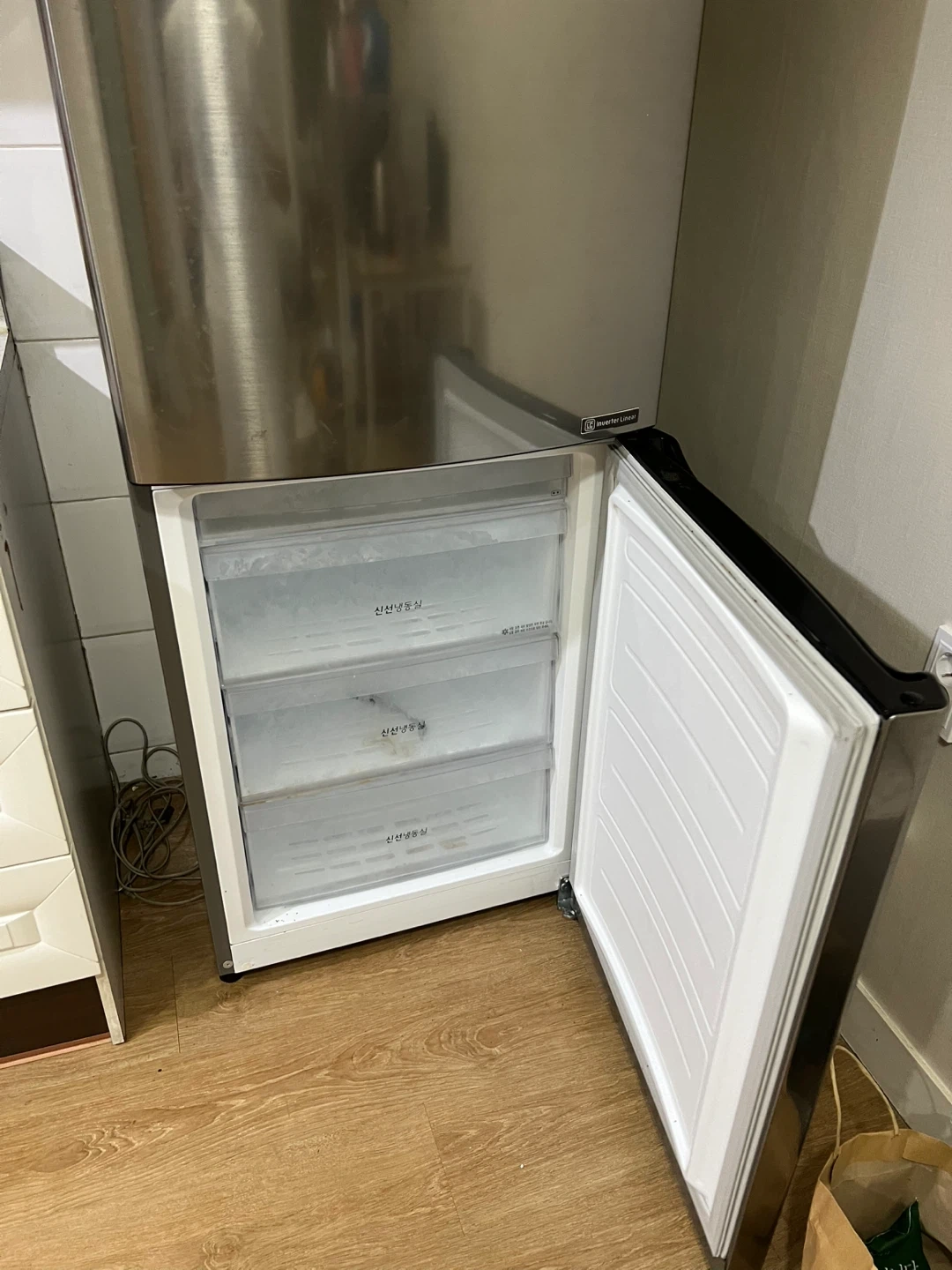 LG 냉장고 판매합니다 - 용량은 287L입니다 - 에너지 소비 효율 2등급 제품입니다 - Multi Air Flow 기능으로 냉장고 내부 온도를 균일하게 유지해줍니다 - 리니어 컴프레서 10년 무상보증 스티커가 부착되어 있습니다 ㅡㅡㅡㅡㅡㅡㅡㅡㅡㅡㅡㅡㅡㅡㅡㅡㅡㅡㅡㅡㅡ 20년도 구입, 지금은 단종된 제품으로 냉장/냉동 기능 짱짱하게 돌아갑니다 안에 청소는 좀 하셔야 해요...ㅠㅠ 급하게 이사 가야해서 처분합니다 혼자 사는데 큰 냉장고 찾으시면 좋아요!! 엘베 없는 5층 집입니다 사람 많이 불러와서 직접 들고 가셔야 합니다! 못 도와드립니다 ㅜㅜ ㅡㅡㅡㅡㅡㅡ 가격 네고 가능!