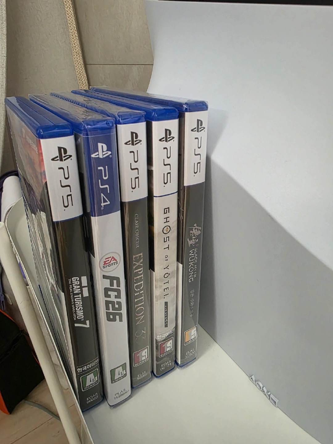 ps5 pro disk drive 듀얼센스 2개(흰색 + 국방색) 듀얼센스 충전기 박스 포합입니다. 게임은 cd로 고스트오브 요테이 (특전 미사용) 33원정대 (미개봉) 검은 신화 오공 디럭스 (미개봉) fc26 (ps4 버젼 ps5 무료업글가능) 미개봉 그란투리스모 7 입니다. 일괄로 판매희망합니다. 계정에 게임 꽤 있는데 원하시면 초기화 없이드립니다. (라오어, 위쳐, 호그와트, 배필1, 오버쿡드, 갓오브워 등)